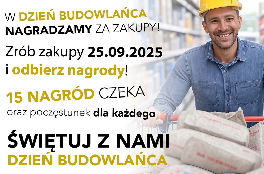 Dzień Budowlańca – NAGRADZAMY ZAKUPY! Tylko 25 września 2025 (czwartek)Dla wszystkich wykonawców – kto pierwszy, ten lepszy! ZRÓB ZAKUPY I ODBIERZ NAGRODĘ! W Dniu Budowlańca nagradzamy pierwszych 15 wykonawców, którzy...